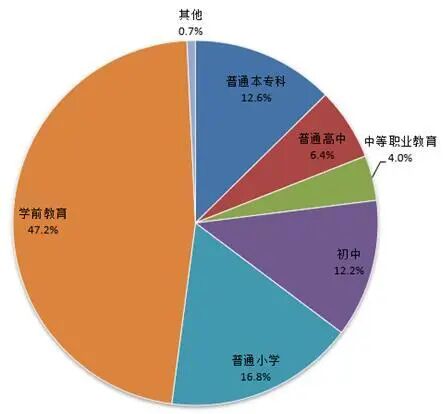 民办幼儿园17.32万所,比上年增加7457所,增长4.50%;入园儿童904.68万人;在园幼儿2649.44万人,比上年增加9.66万人,增长0.37%。