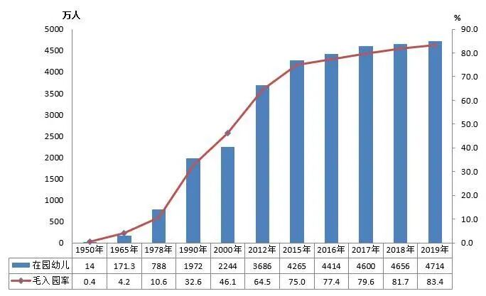 [2]含独立设置的幼儿园和附设幼儿班幼儿。2019年,根据教育事业发展情况对学前教育入园幼儿指标进行修订,数据与往年不具可比性。