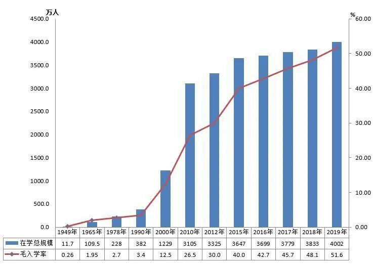 [18]包括研究生、普通本专科、成人本专科、网络本专科、高等教育自学考试本专科等各种形式的高等教育在学人数。